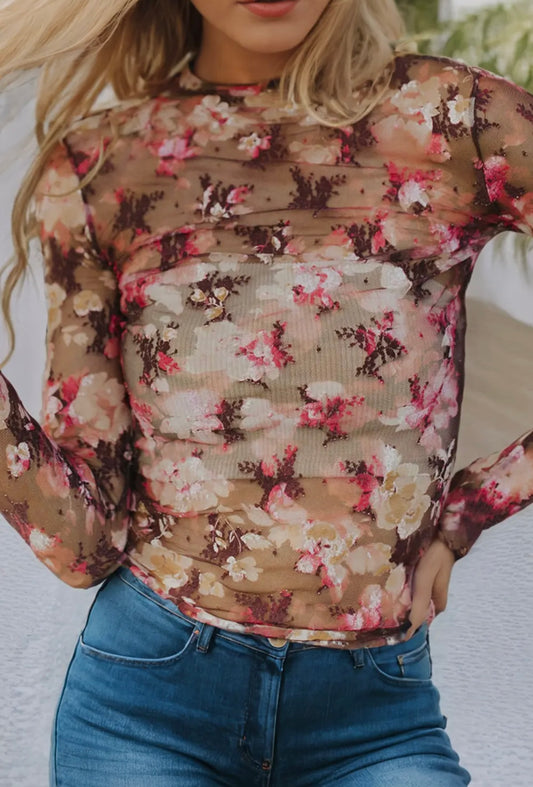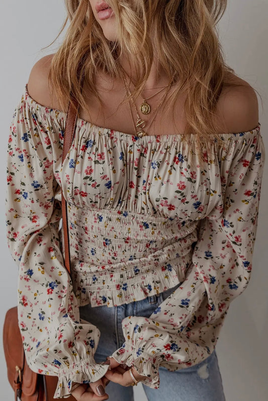 Boho Floral Print Smocked V Neck Peplum Blouse